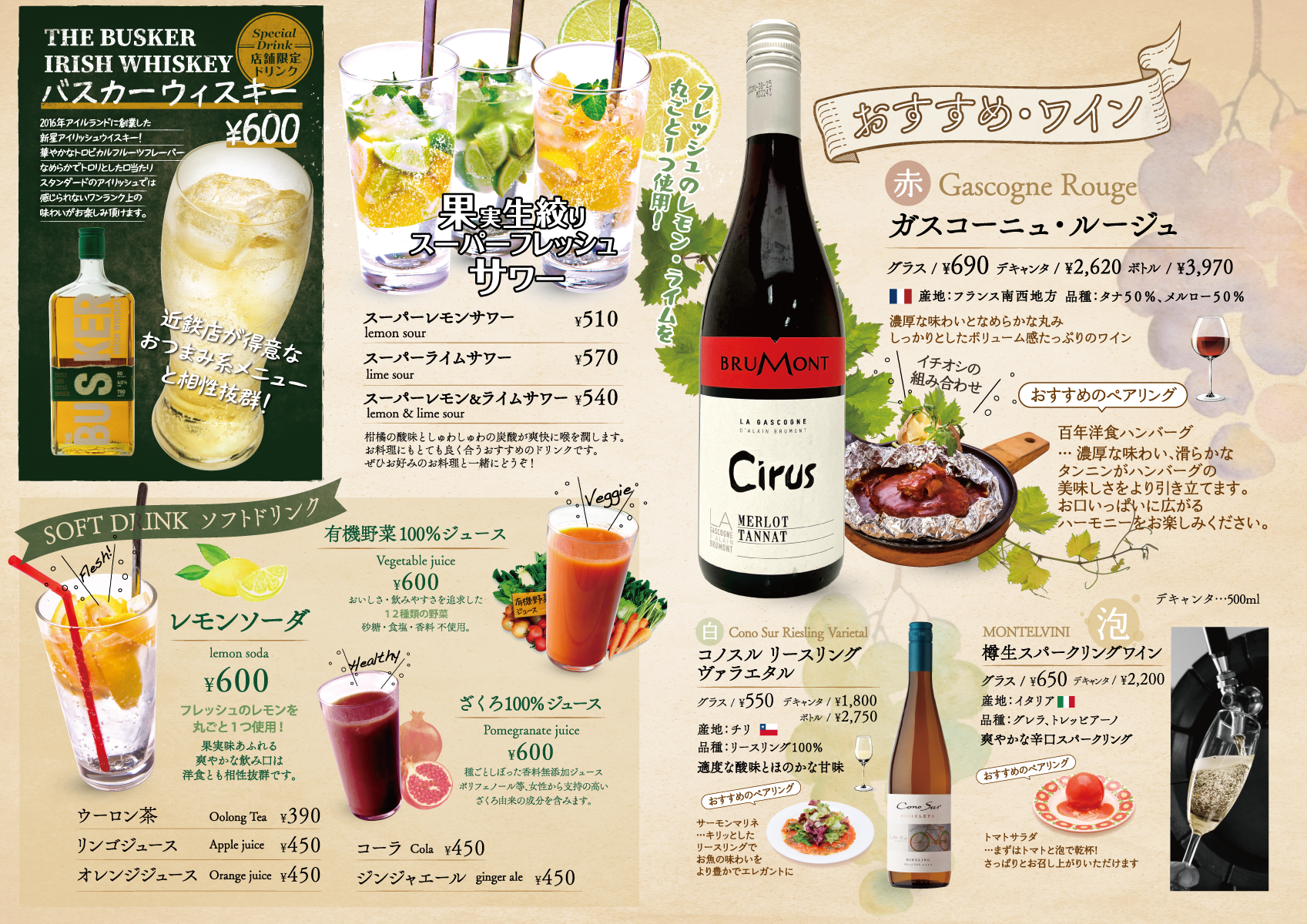 近鉄みやこみちの突き当り、噴水の横に当店はございます。かわいらしい装飾を施した店内でスタッフの活気が満ち溢れています。ワインを中心にビールもアルコールも取り揃えております。「ワインはわからない・・・。」「高いんじゃないの?」というお客様。ご安心下さい。お手軽価格で楽しんでいただけるワインを中心に取り揃えております。料理長始めキッチンスタッフが心をこめてお作りするお料理をお好みのお酒を片手に楽しんでいただければ幸いです。もちろん!お酒が苦手な方も大歓迎です。