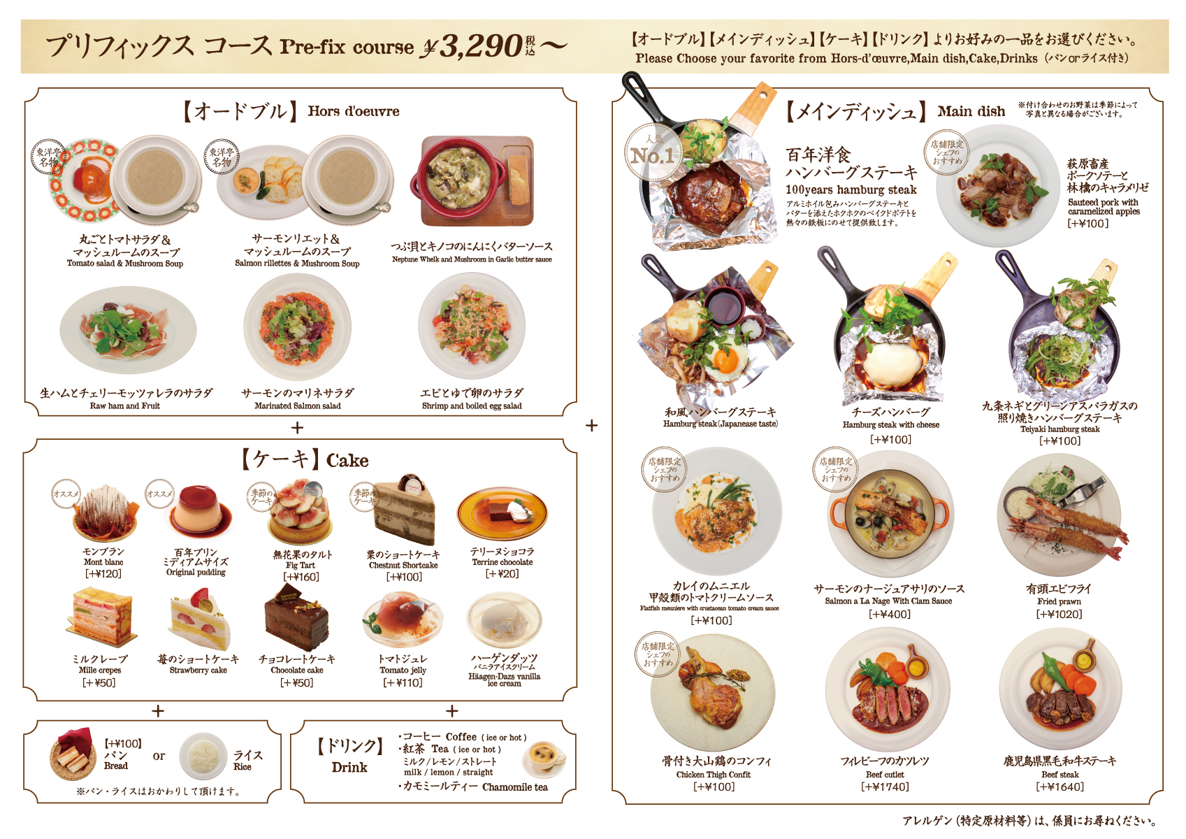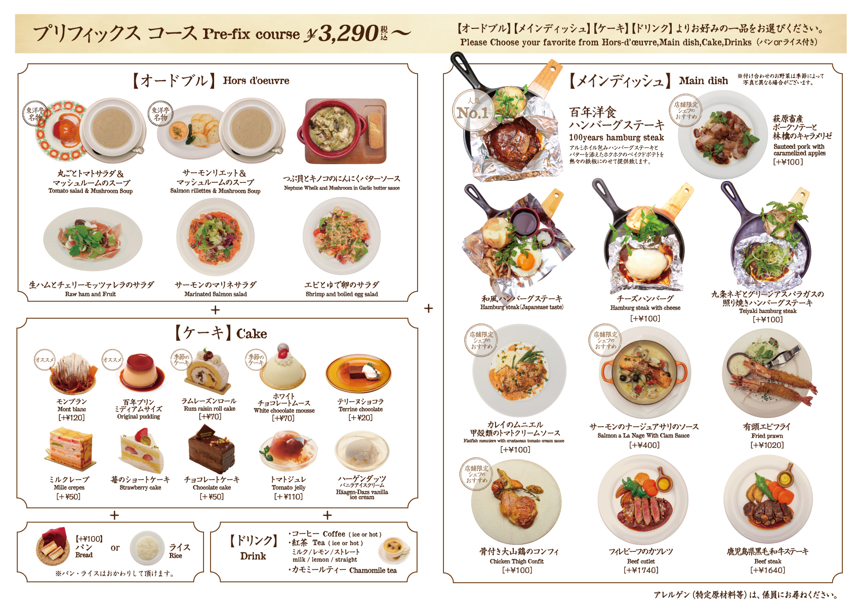 京都の東洋亭にはない、阪急オリジナルメニューもご用意しておりますので、見て楽しい、食べて美味しい。一皿一皿をじっくりご堪能ください。
